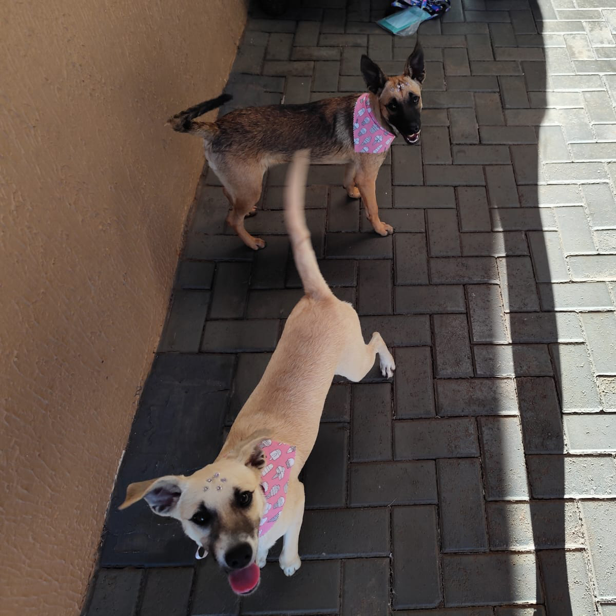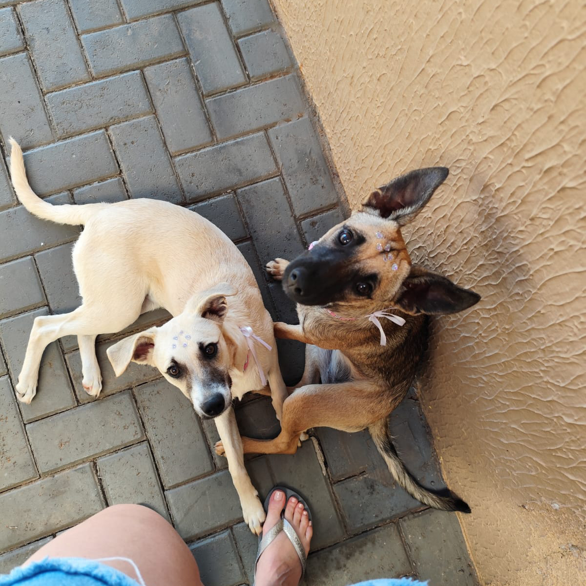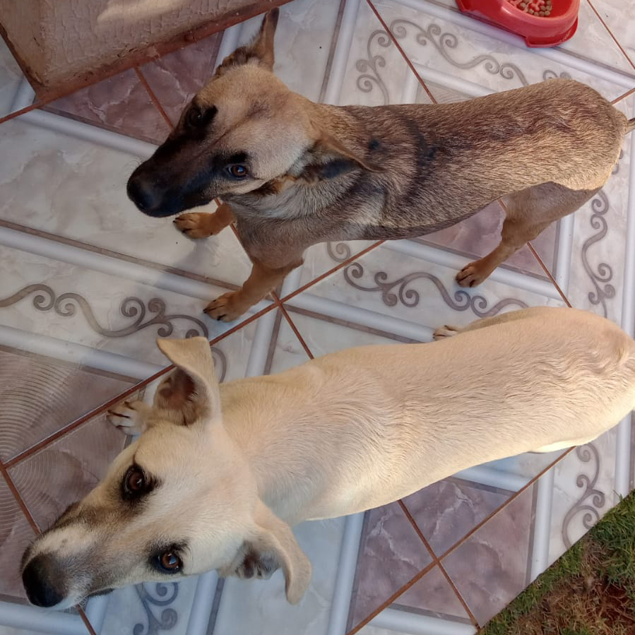 Essas irmãs caninas foram acolhidas com menos de 2 meses de vida, foram adotadas em um evento de adoção, mas infelizmente, alguns dias depois, foram abandonadas a própria sorte novamente. Estão em lar temporário há mais de um ano, aguardando uma família. São um poucos desconfiadas com pessoas estranhas, mas depois de um tempo fazem amizade. São super brincalhonas, estão castradas e vacinadas, porte médio